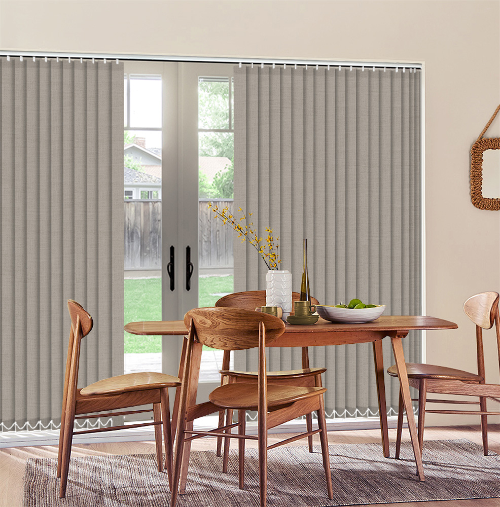 A dark beige coloured vertical blind combined with blockout property, to give that cosy feel in the bedroom and living room decor. Available in an 89mm slat width.
