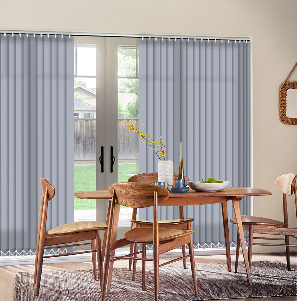Dim out vertical blind in a marian blue colour, this soft tone fabric will create a warm and cosy feel to any room in your home. Available in an 89mm louvre.